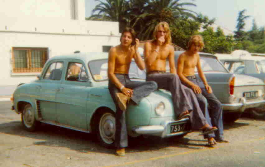 tout ça sous le soleil de 1976 ! Plus tard, Bernard s'acharnant à lui faire péter les soupapes elle passera quand même pas mal de temps dans le garage rue St Ludan, où je la retape et la peinds en blanc et bleu. Ce devait être la couche de base pour en faire une couleur jean Levi's 501. Deux ans plus tard, des bruits craquements de chassis m'oblige à la mettre à la casse. |