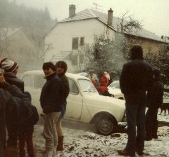 voiture. Sans tambour, ... plus de freins non plus. Avec Marcel on a changé le moteur. Je l'ai eu pendant un an, ... jusqu'au moment où j'ai entendu "quelque chose" tomber pendant que je roulais sur la route d'Ober à Cronenbourg (j'allais au CNRS). Je l'ai mise à la casse. N'ayant de toute façon pas assez de sous pour une voiture. Vive la mob ! |