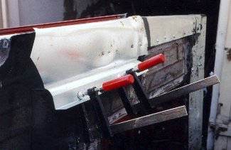 l'intérieur de la voiture et les vis du serre-joint sur la tôle.