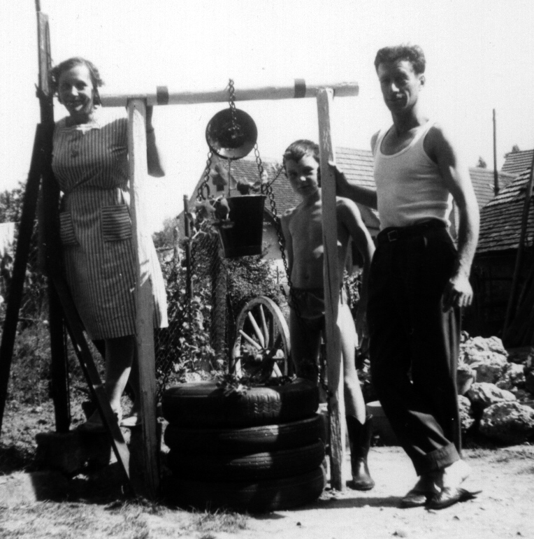 près du puits avec ma cousine Marlyse et René