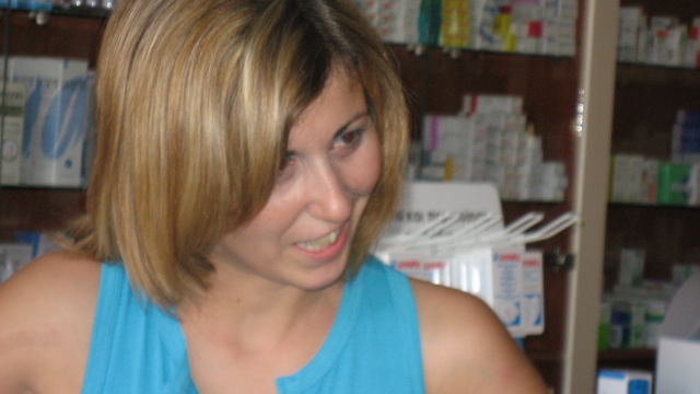 Maria dans sa pharmacie à Ammoudia