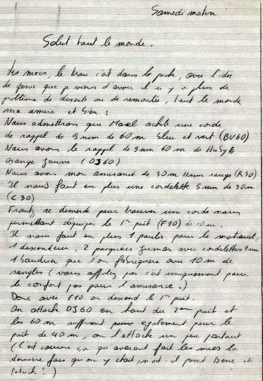 En 1978 nous avons mené une expédition dans le gouffre de Pourpevelle, à quelques centaines de mètres de la grotte de la Bournois. "Expédition" par l'ampleur des préparatifs et du matériel emporté au fond du trou, pas par l'exploit sportif ou scientifique. Treize sacs marins de l'armée, avec, entre autres, une bouteille de plongée et deux caisses de bière. Pour y dormir deux nuits ...