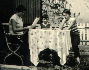 ?, ?, ma mère, moi, Agnès, ?, ?, Marlyse, René;